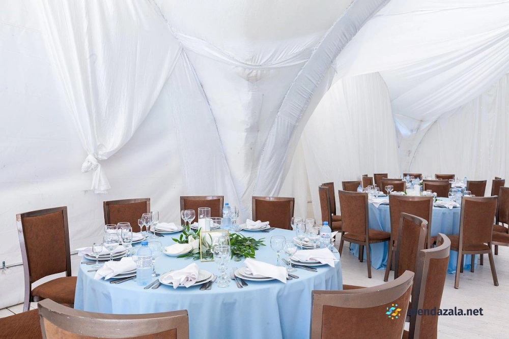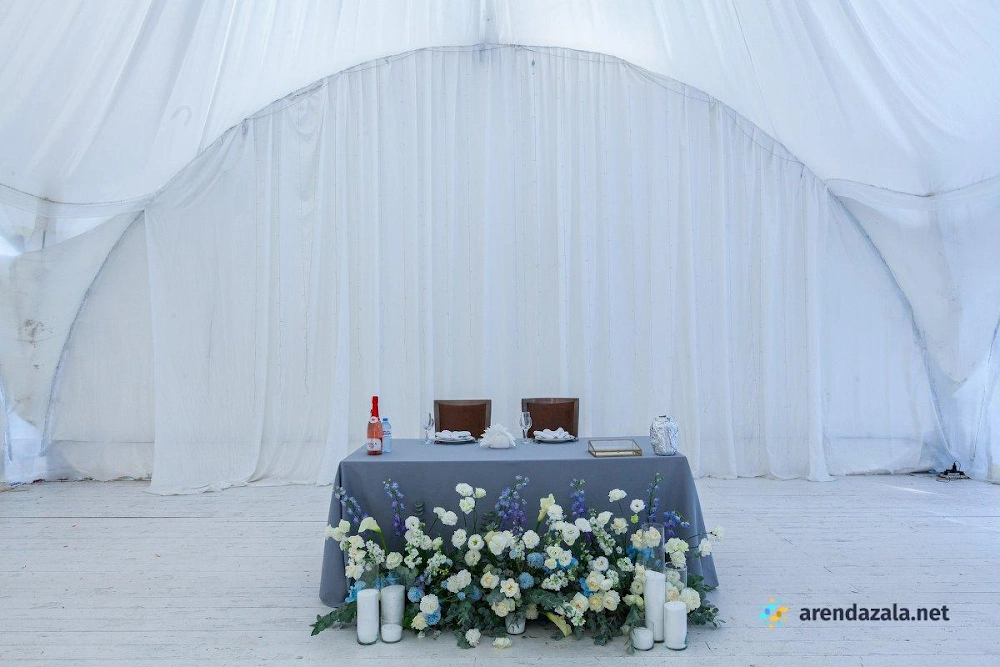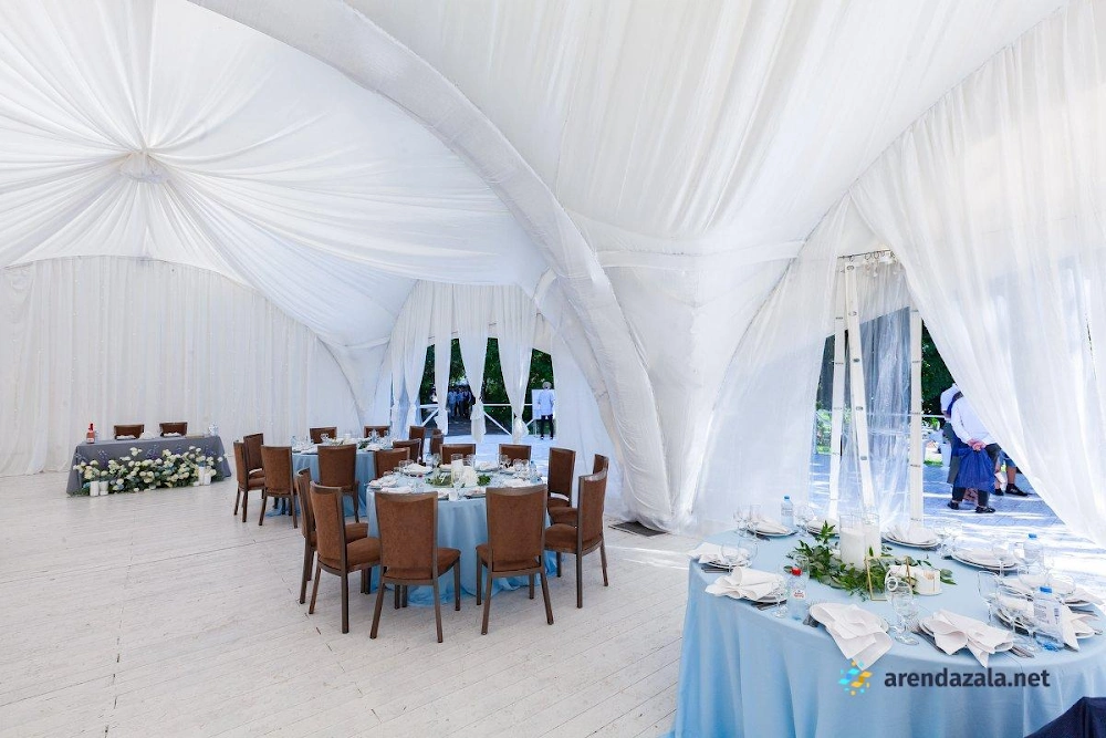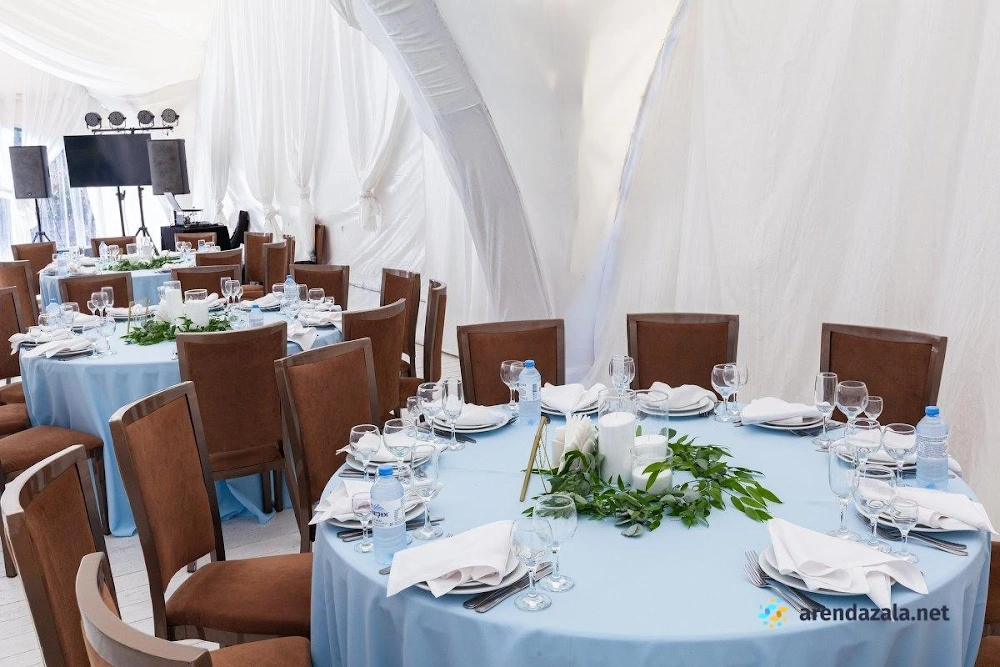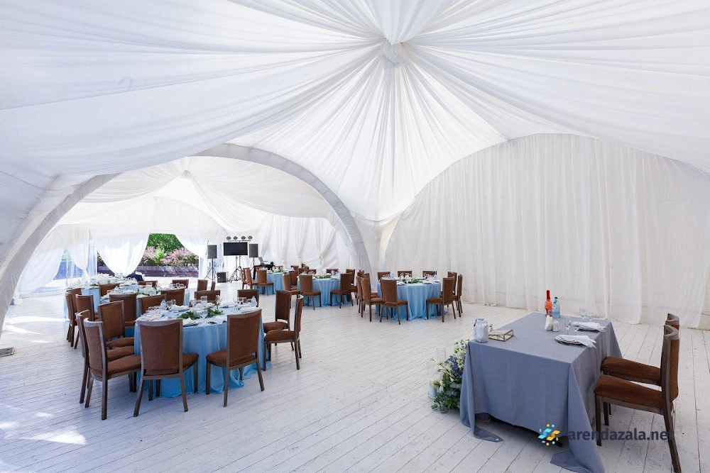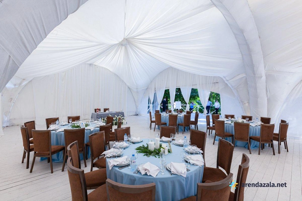 Арочный шатер предлагает гостям уютную атмосферу, где они могут насладиться прекрасным видом на воду и вкусными блюдами. Светлый и просторный зал наполняется мягким сиянием заходящего солнца, создавая неповторимую романтическую обстановку. Профессиональные сотрудники обеспечивают безупречное обслуживание, предлагая фуршетное меню с разнообразными угощениями, которые подаются аккуратными и вежливыми официантами. Заведение идеально подходит для проведения торжественных мероприятий, таких как свадьбы и выпускные вечера, где гости могут почувствовать себя по-особенному.