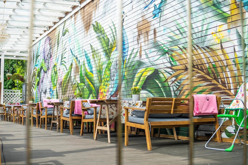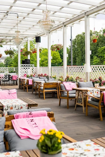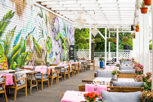 Банкетный зал отличается изысканным интерьером в стиле неоклассики с элементами шинуазри, создающим атмосферу торжественности и уюта благодаря многочисленным свечам, бархатным шторам и экспериментальной музыке. Предлагается разнообразное классическое европейское меню с акцентом на мясные блюда, а также широкий выбор алкогольных напитков, включая авторские коктейли. Вкусная кухня, приемлемые цены и внушительные порции дополняются безупречным обслуживанием вежливого и оперативного персонала. Заведение располагает просторными залами с большими панорамными окнами, откуда открывается живописный вид, а также летней верандой и детским уголком с аниматором.