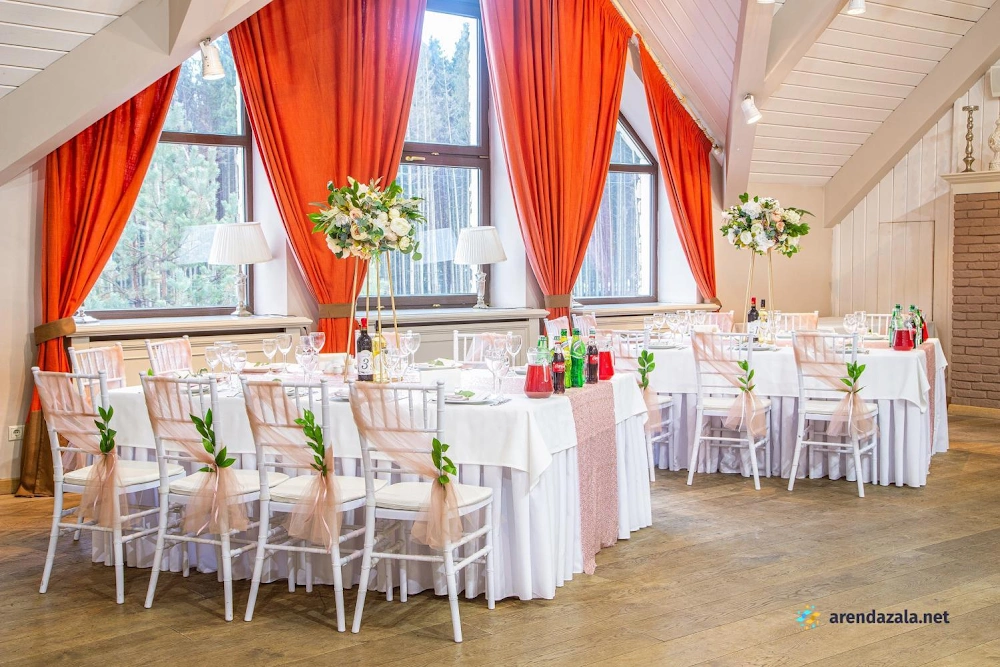 Банкетный зал представляет собой живописное место с уютной атмосферой, где посетители могут насладиться превосходной кухней и незабываемым отдыхом на лоне природы. Здесь располагаются отдельные беседки на свежем воздухе, окруженные прудиками с уточками, свободно гуляющими оленями и кроликами, создавая ощущение пребывания в лесу. Внутренние помещения отличаются изысканным дизайном, чистотой, теплом и превосходной акустикой. Меню предлагает разнообразные блюда из свежих натуральных ингредиентов, приготовленные на высочайшем уровне, что обеспечивает истинное наслаждение для гурманов. Гостеприимный персонал обеспечивает безупречный сервис, создавая атмосферу комфорта и радушия.