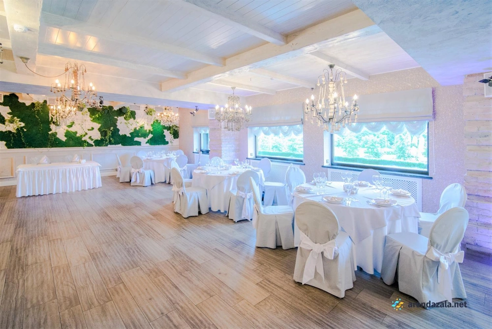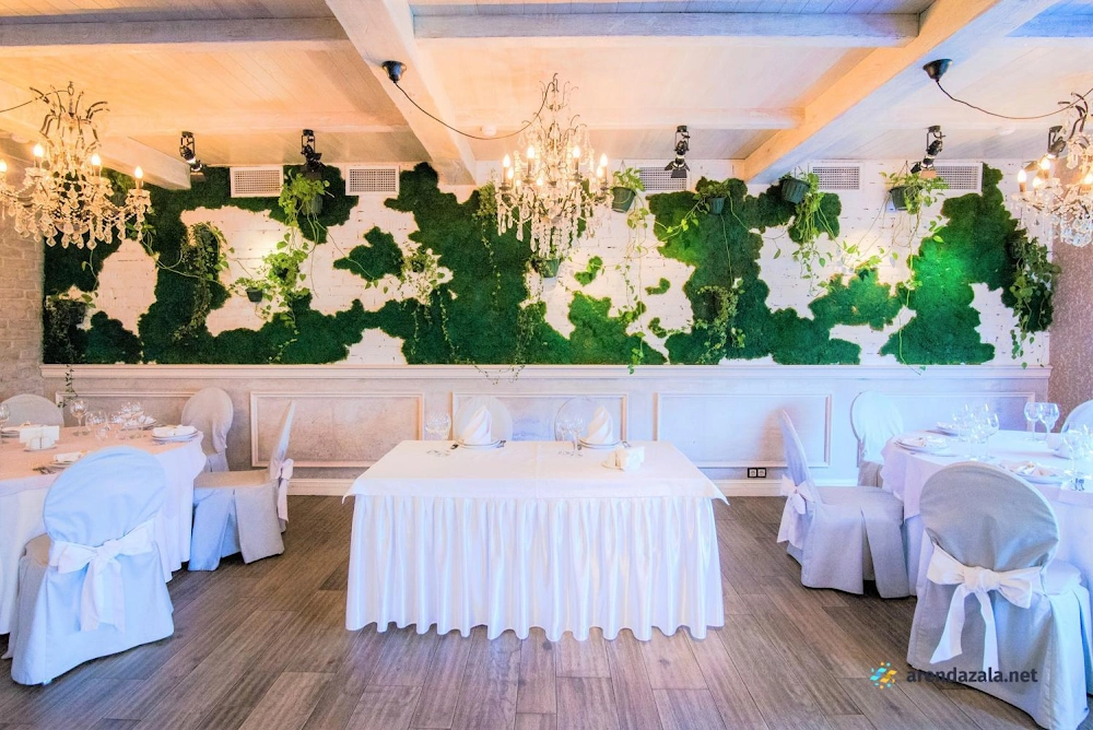 Банкетный зал отличается изысканным внутренним убранством, создающим атмосферу торжественности и уюта. Просторный зал с современной мебелью, эффектной подсветкой и расцветающей летом территорией вокруг идеально подходит для проведения свадеб и других праздничных мероприятий. Высококлассный персонал, включая отзывчивых официантов и талантливых поваров, обеспечивает безупречное обслуживание гостей. Заведение предлагает прозрачное ценообразование без скрытых дополнительных услуг, а управляющая Ирина оказывает всестороннюю поддержку в подготовке торжества, включая рекомендации подрядчиков, помощь в составлении меню и расстановке гостей.