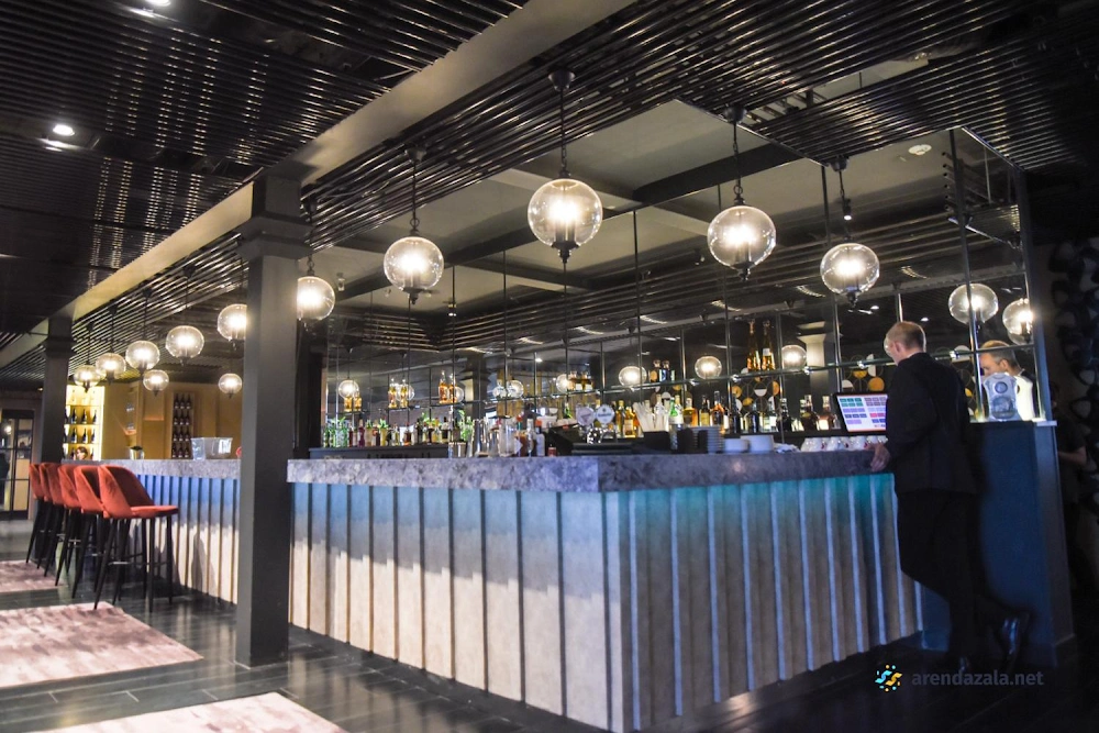 В банкетном зале на 1 этаже атмосфера поистине сказочная - с потрясающим видом, достойным интерьером и дружелюбным обслуживанием. Опытные официанты, прекрасно владеющие английским языком, подберут сбалансированное меню из вкуснейших блюд, которые приведут в восторг даже самых взыскательных гурманов. Здесь можно отлично отпраздновать любое торжество, получив незабываемые положительные эмоции в окружении живой музыки и великолепной атмосферы.