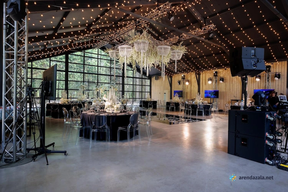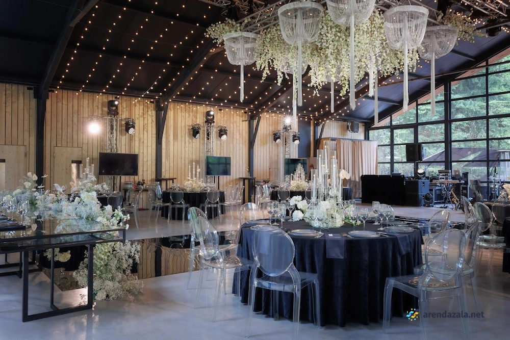 Банкетный зал "HIDE" представляет собой уникальную загородную площадку, расположенную в непосредственной близости от Москвы. Это светлое и свежее помещение, вмещающее до 120 персон, с просторной зоной для танцпола, возможностью установки сцены для выступлений артистов и шоу-программ. Территория комплекса отличается большой площадью и живописным природным окружением, а также наличием бесплатной парковки. Высокий уровень обслуживания и кейтеринга от площадки обеспечивает незабываемые гастрономические впечатления, особенно в летнее время. Персонал одет в едином стиле, создавая атмосферу профессионализма. Заведение рекомендуется для проведения корпоративных мероприятий, дней рождения и свадеб, позволяя реализовать разнообразные концепции декора.