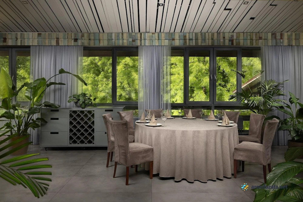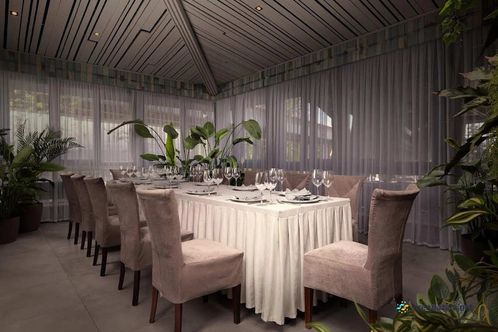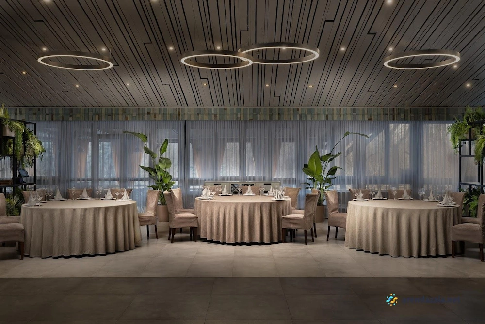 В окружении живописного парка располагается уютный шатер ресторана с каминным залом. Внутреннее убранство отличает изысканный интерьер, создающий атмосферу теплого гостеприимства. Обходительный персонал обеспечивает безупречное обслуживание, предугадывая малейшие желания гостей. Умелые руки поваров дарят изысканные блюда, способные удовлетворить самый взыскательный вкус. Однако стоит заранее обратить внимание на возможное присутствие насекомых. Флористическое оформление из живых цветов придает особое очарование этому месту, где каждая деталь продумана до мелочей, будь то семейное торжество, деловая встреча или романтический вечер.