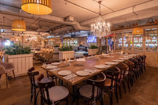 На первом этаже Амбассадори располагается уютный балкон с приятной атмосферой и лаконичным дизайном, радующим глаз. Посетителей ждет великолепный вид из окон и безупречное обслуживание внимательных официантов, готовых помочь с выбором блюд и напитков. Меню включает вкусные блюда по разумным московским ценам, а также обширную винную карту. Для семейного отдыха предусмотрена детская зона, обеспечивающая спокойную и расслабляющую обстановку.