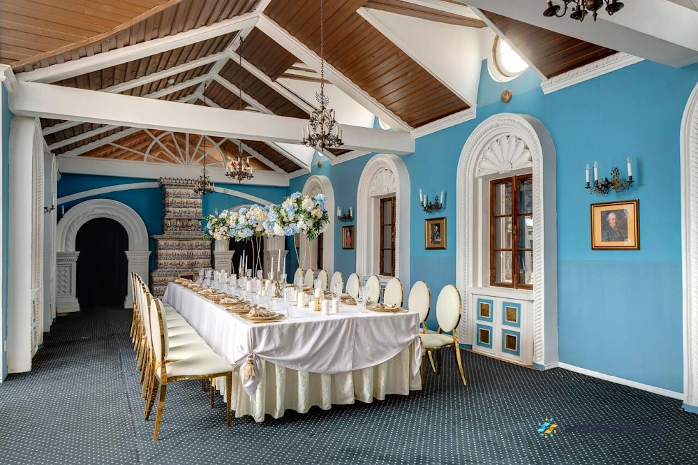 В усадьбе расположен уютный зал с изысканным интерьером старинной эпохи, где подают вкусные блюда из свежих продуктов в больших порциях по доступным ценам. Приветливый и исполнительный персонал создает атмосферу гостеприимства, а живая музыка дополняет торжественное настроение. Зал идеально подходит для проведения праздников и деловых мероприятий благодаря удобному размещению и наличию парковки на территории усадьбы.