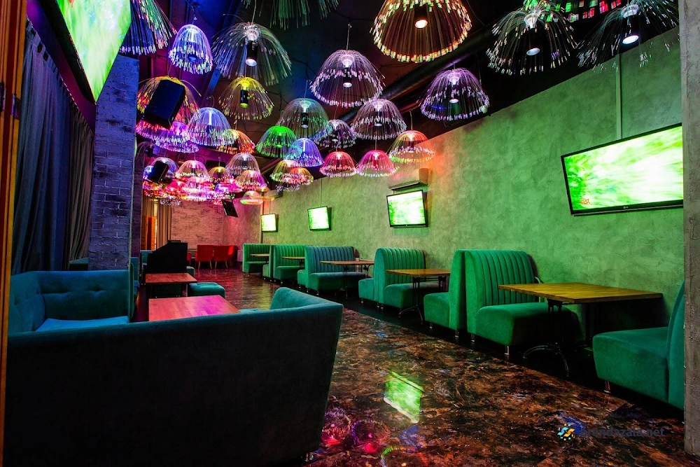 Заведение располагается на втором этаже и предлагает посетителям уютную атмосферу, где можно приятно провести время, насладиться широким выбором коктейлей, сыграть в боулинг или спеть под музыкальное сопровождение. Интерьер выполнен в стильном дизайне, а вежливый персонал обеспечивает высокий уровень обслуживания, радуя гостей своими улыбками и вниманием к пожеланиям. Для семейного отдыха предусмотрен детский уголок с развлечениями, а также предлагается разнообразное меню с блюдами хорошего качества. Расстановка столов позволяет свободно общаться в приятной обстановке.