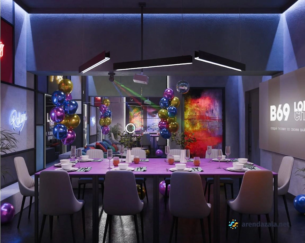 Галерея В69 представляет собой уникальный лофт с красивым интерьером и множеством локаций для фотосессий. Здесь царит атмосфера праздника благодаря ярким световым инсталляциям, зажигательной музыке диджеев и караоке. Гости отмечают отзывчивость и клиентоориентированность персонала, который стремится создать незабываемые впечатления. Просторные залы идеально подходят для празднования дней рождения и других торжеств. В то же время посетители указывают на некоторые организационные недочеты и средний уровень кухни, что оставляет пространство для совершенствования сервиса.