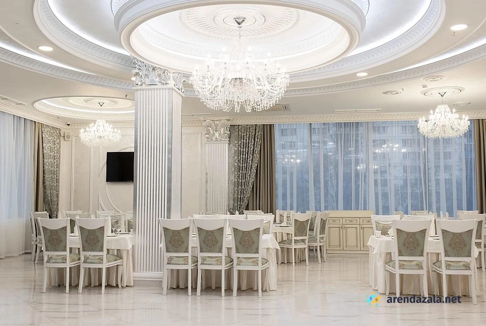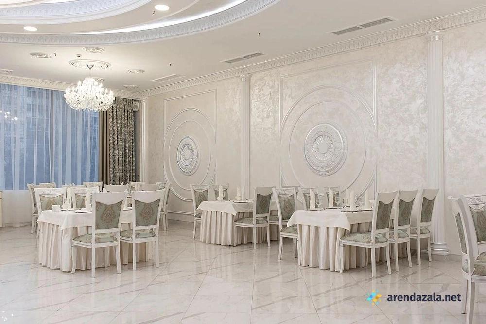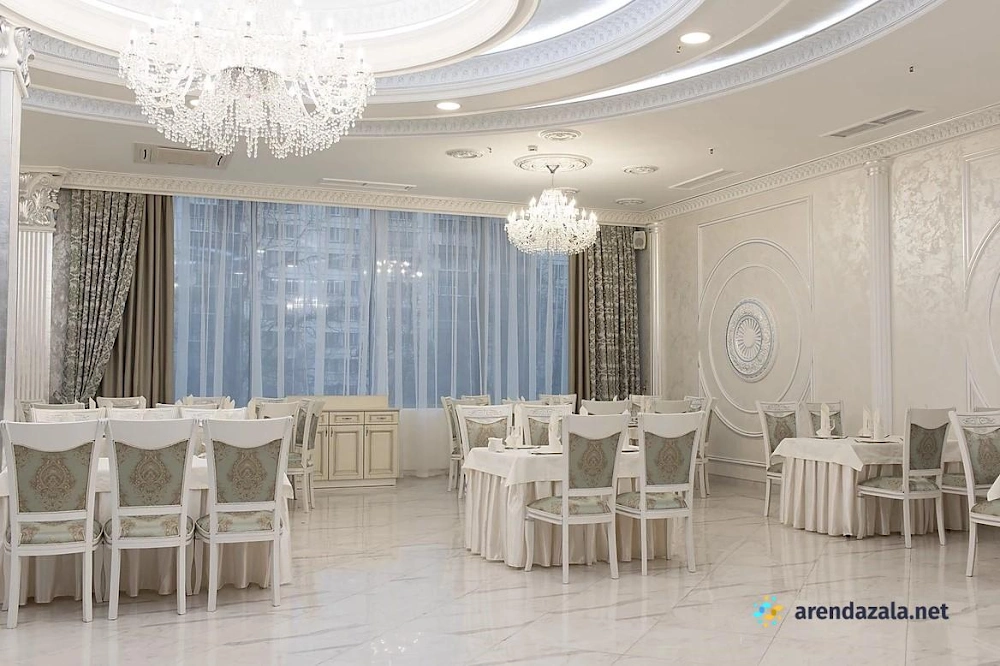 Зал «Панорамный» White hall представляет собой просторное и светлое помещение, идеально подходящее для проведения торжественных мероприятий. Здесь установлены кондиционеры, обеспечивающие комфортную температуру, а также выделено специальное место для курения. Зал отличается элегантным и нежным дизайном интерьера, создающим уютную атмосферу. Посетителей ожидает вкусная кухня с разнообразием холодных и горячих блюд, свежих фруктов, овощей и зелени. Вежливый персонал внимательно относится к пожеланиям гостей и помогает в организации мероприятий, обеспечивая безупречный сервис.