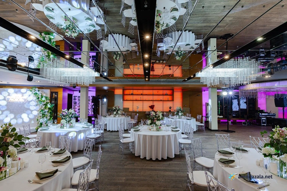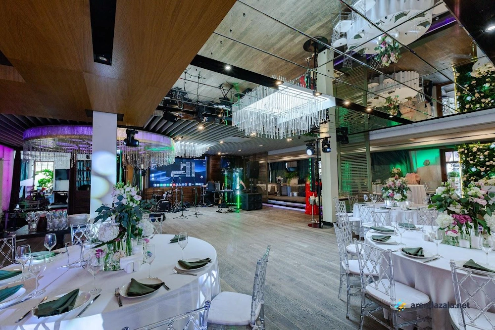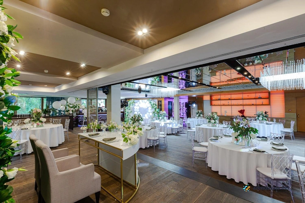 В светлом и просторном зале ресторана гостей ожидает изысканная кухня и безупречное обслуживание. Профессиональная команда официантов работает незаметно, но на высоком уровне, создавая атмосферу праздника. Отдельные залы с ионизаторами воздуха идеально подходят для небольших торжеств, а на крыше расположена открытая веранда для велкома. Внимательные менеджеры помогут скорректировать меню и организовать пространство под нужды мероприятия. Свежие продукты, богатый выбор алкогольных напитков и качественная аппаратура для караоке и танцев сделают любой праздник незабываемым.