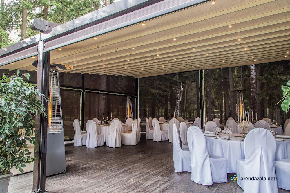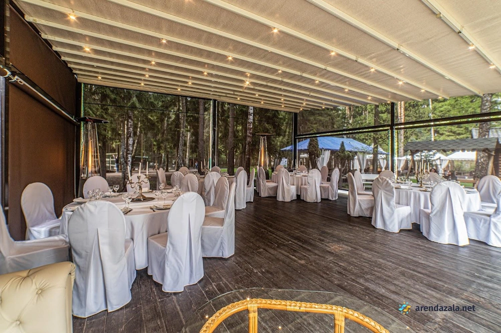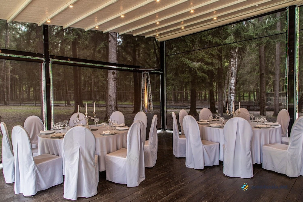 Банкетный зал представляет собой живописное место с уютной атмосферой, где посетители могут насладиться превосходной кухней и незабываемым отдыхом на лоне природы. Здесь располагаются отдельные беседки на свежем воздухе, окруженные прудиками с уточками, свободно гуляющими оленями и кроликами, создавая ощущение пребывания в лесу. Внутренние помещения отличаются изысканным дизайном, чистотой, теплом и превосходной акустикой. Меню предлагает разнообразные блюда из свежих натуральных ингредиентов, приготовленные на высочайшем уровне, что обеспечивает истинное наслаждение для гурманов. Гостеприимный персонал обеспечивает безупречный сервис, создавая атмосферу комфорта и радушия.