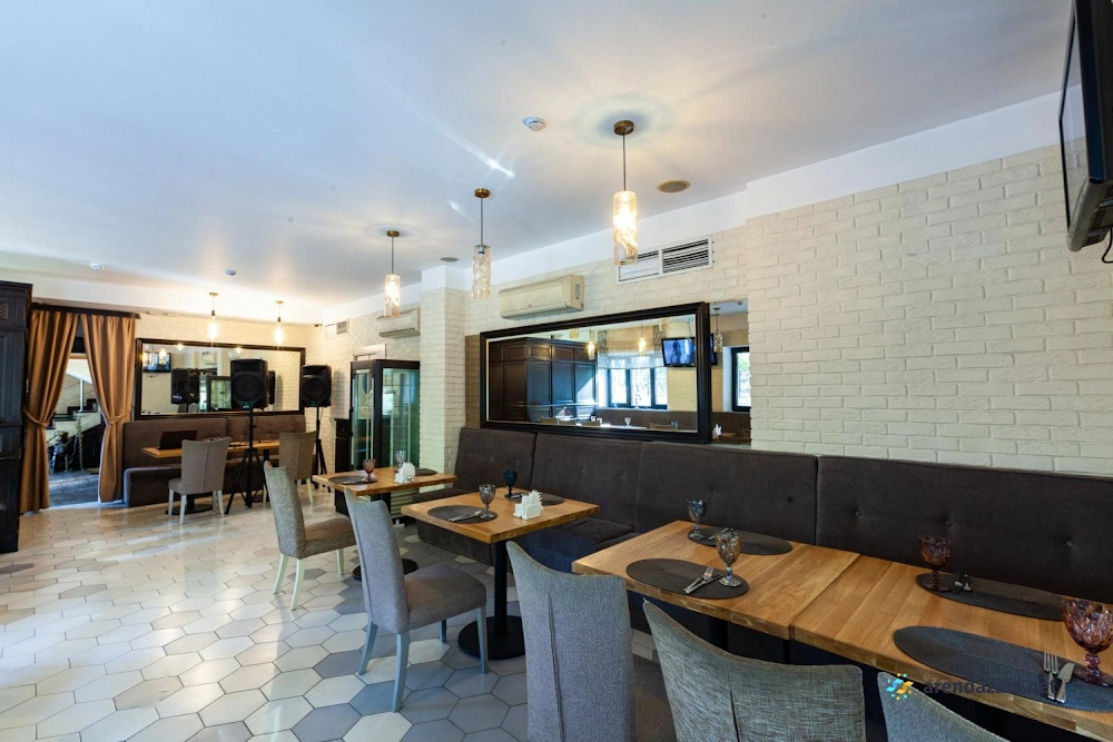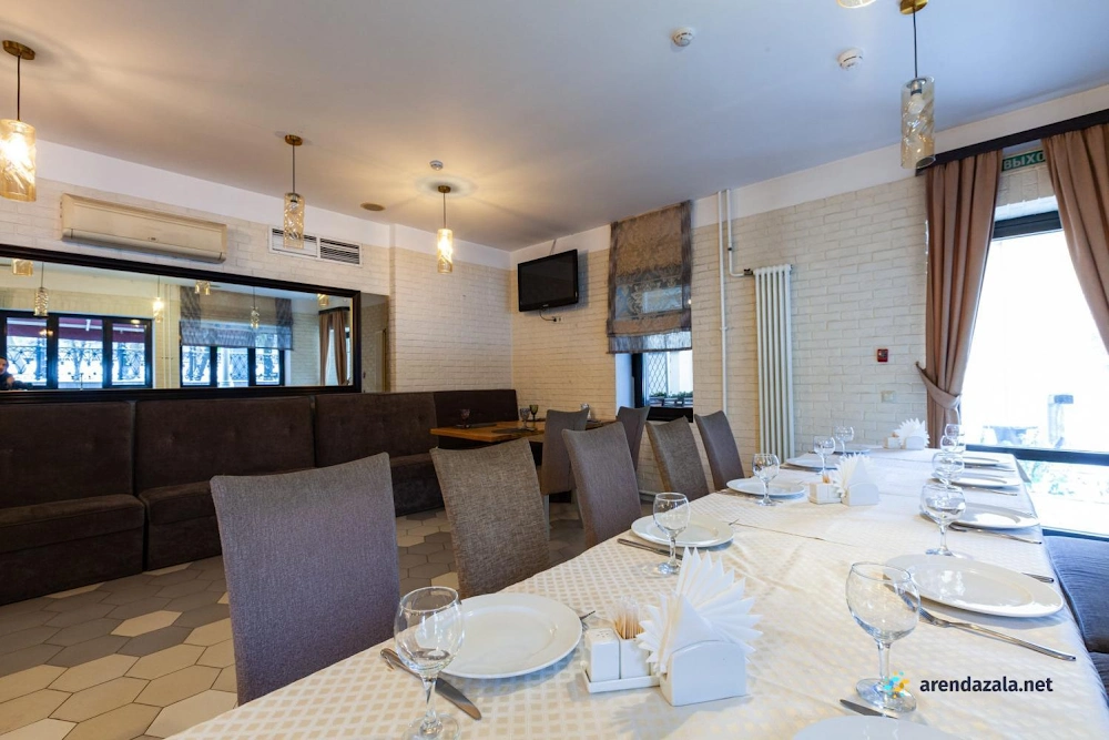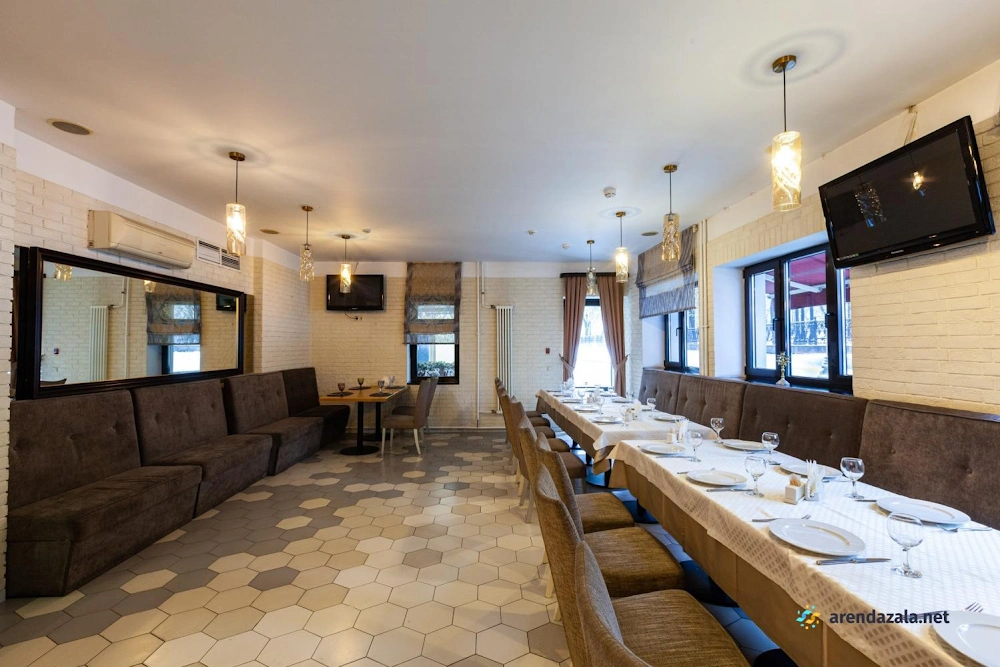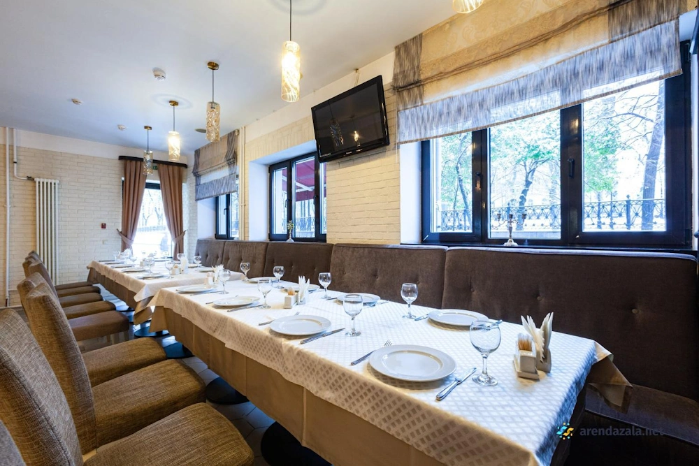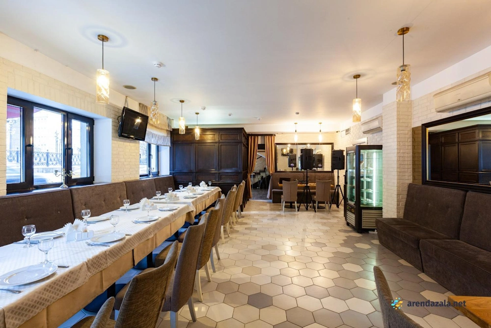 В банкетном зале на 1 этаже подают разнообразные блюда от вкуснейшей баранины на мангале до изысканной семги в соусе «Белое вино». Кухня отличается высоким качеством и разумными ценами, а грамотная подача блюд разгоняет аппетит. Официанты неназойливы, а фоновая музыка не мешает приятному общению за столом. Уютная обстановка и приветливый персонал делают это место привлекательным как для небольших компаний, так и для больших торжеств. Удобное расположение рядом с метро также является преимуществом данного заведения.