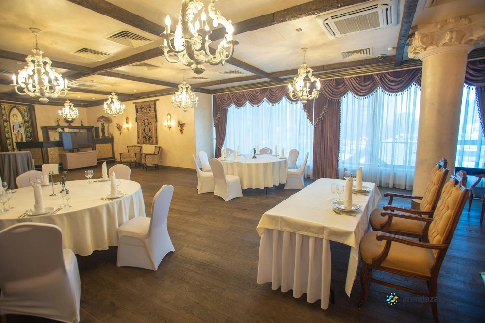Малый зал с верандой заведения предлагает уютную атмосферу, выдержанную в классическом стиле. Просторный светлый зал с достойным оформлением и большая парковка создают комфортные условия для проведения торжественных мероприятий. Доброжелательный персонал и опытные менеджеры помогут составить меню по разумным ценам, учитывая пожелания гостей. В заведении можно заказать дополнительные услуги, такие как музыкальное сопровождение и ведущий. Кухня предлагает разнообразные блюда, среди которых особенно рекомендуют мясное ассорти. По выходным здесь работает караоке с качественным звуком.