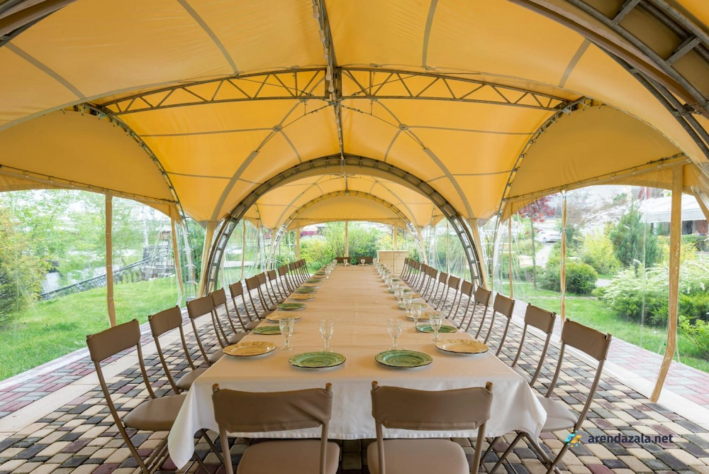 В уютном загородном ресторане расположен домик, вмещающий до 30 человек, где гостей ждет разнообразная развлекательная программа с конкурсами, выступлениями артистов и аниматоров. Блюда отличаются свежестью ингредиентов и большими порциями, особенно восхищают вкусные салаты, мясо с пряным соусом и хрустящие лепешки. Обслуживание ненавязчивое, но внимательное, создающее непринужденную атмосферу. Уютная территория с зеленью, прудиком и открытой площадкой для танцев располагает к приятному отдыху.