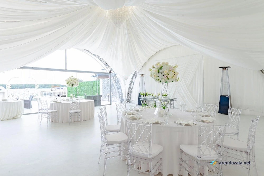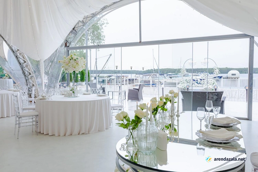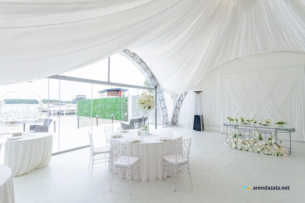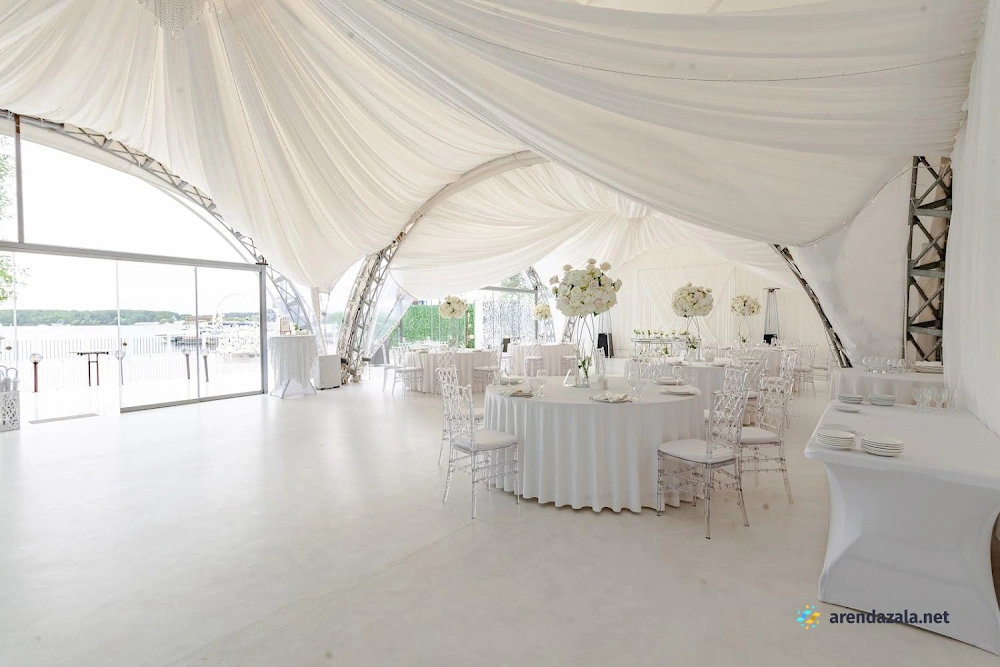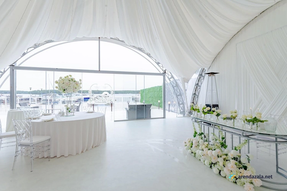 Уютный шатер на берегу водоема радует гостей панорамными видами, эффектной подсветкой, оформлением в праздничном стиле и качественным обслуживанием. Раздвижные стеклянные стены создают атмосферу свежести и позволяют наслаждаться пейзажами в любую погоду. Шеф-повар удивляет изысканными блюдами с красивой подачей и большими порциями. Просторная территория с парковкой и выходом к воде располагает к неспешным прогулкам и фотосессиям на фоне живописной природы.