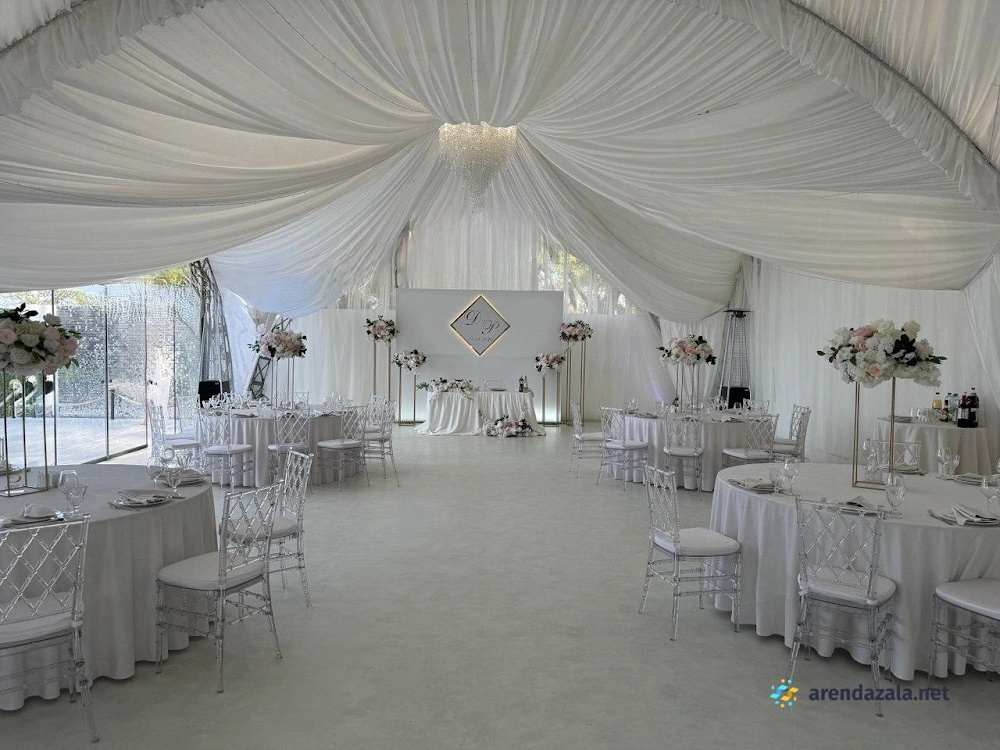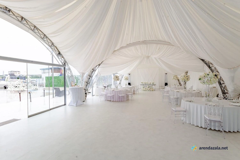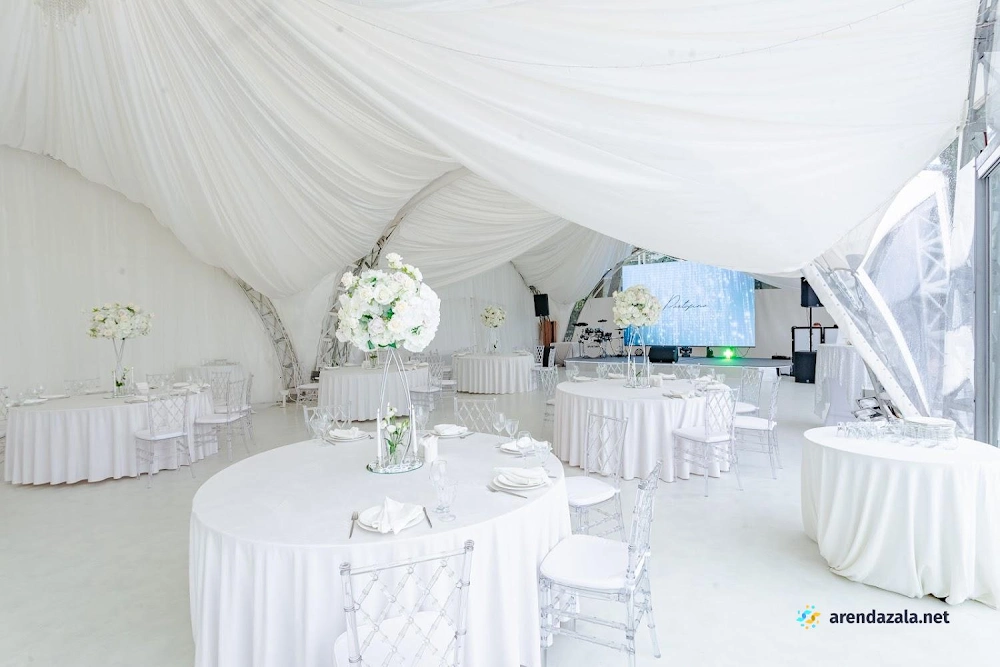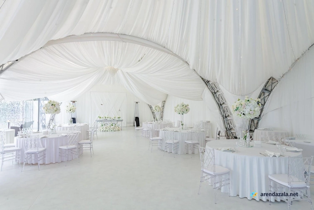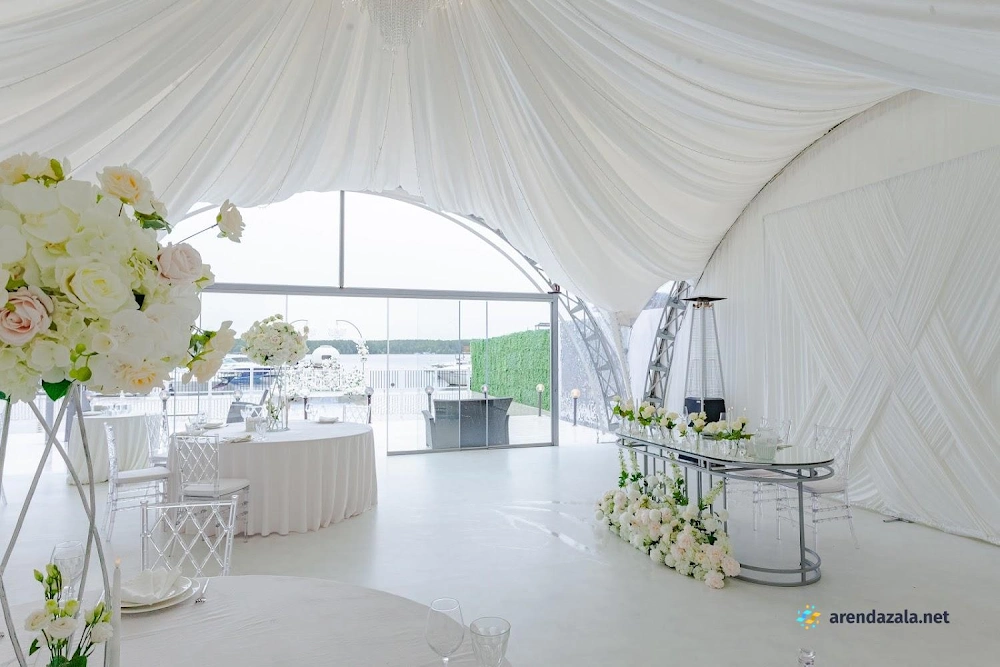Уютный шатер на берегу водоема радует гостей панорамными видами, эффектной подсветкой, оформлением в праздничном стиле и качественным обслуживанием. Раздвижные стеклянные стены создают атмосферу свежести и позволяют наслаждаться пейзажами в любую погоду. Шеф-повар удивляет изысканными блюдами с красивой подачей и большими порциями. Просторная территория с парковкой и выходом к воде располагает к неспешным прогулкам и фотосессиям на фоне живописной природы.