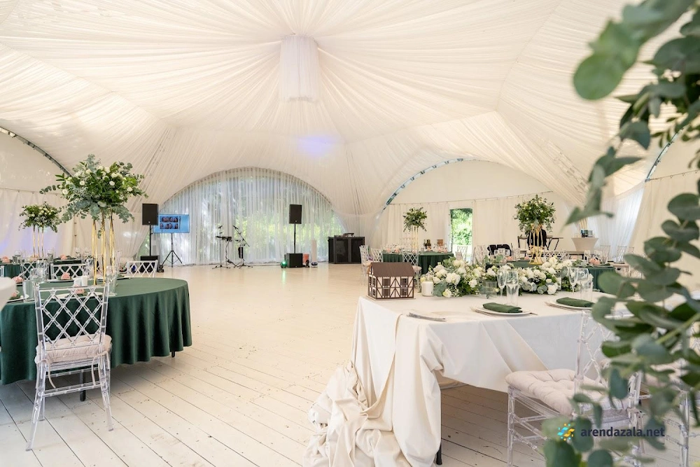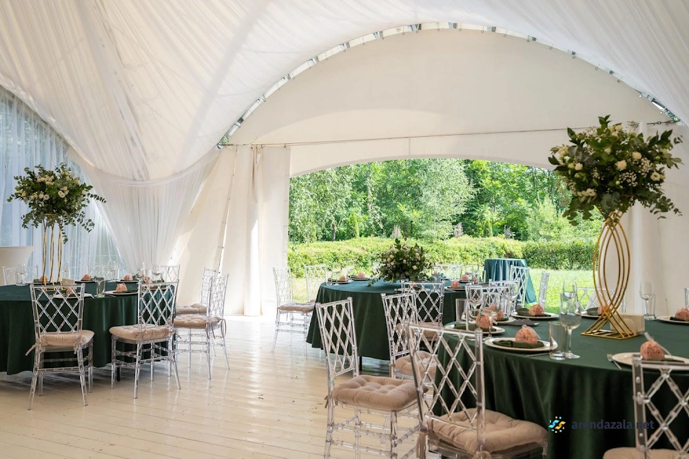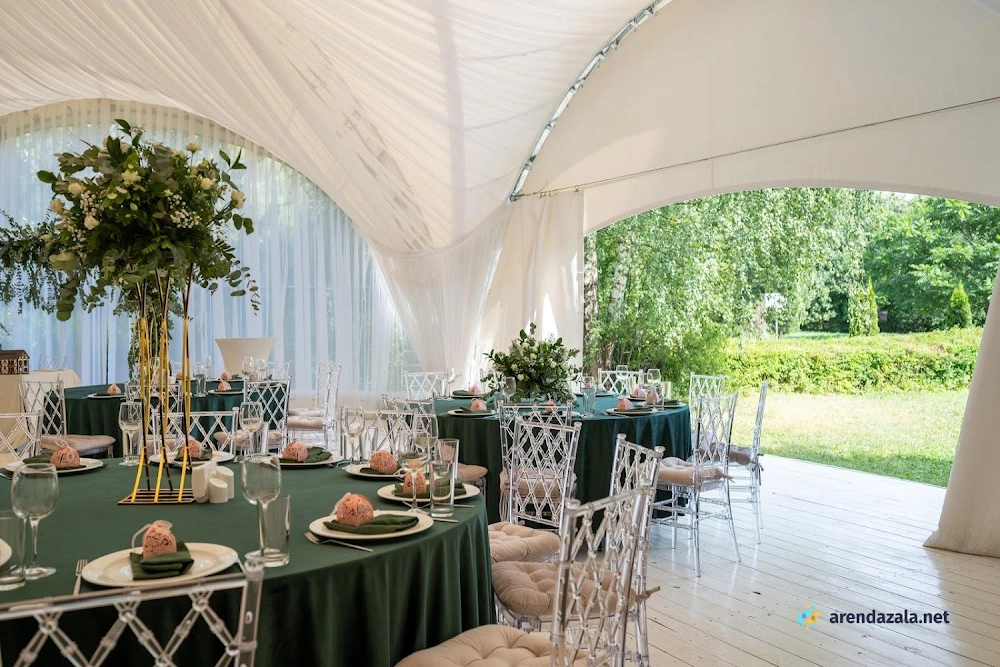 В усадьбе расположен уютный зал с изысканным интерьером старинной эпохи, где подают вкусные блюда из свежих продуктов в больших порциях по доступным ценам. Приветливый и исполнительный персонал создает атмосферу гостеприимства, а живая музыка дополняет торжественное настроение. Зал идеально подходит для проведения праздников и деловых мероприятий благодаря удобному размещению и наличию парковки на территории усадьбы.