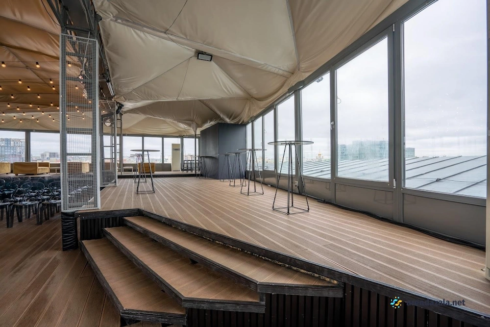 На вершине концептуального торгово-развлекательного центра располагается фееричное заведение с панорамными видами на центр города. Просторный зал с балконами и вторым этажом, напоминающим ресторан, оборудован сценой для проведения различных мероприятий – будь то свадьба, корпоратив или день рождения. Гостей ожидает вкусная кухня, а безупречный сервис официантов гарантирует комфортную атмосферу торжества. Добраться до этого уникального места не так просто, но отзывы посетителей помогут найти путь на седьмой этаж, откуда открываются впечатляющие виды мегаполиса.