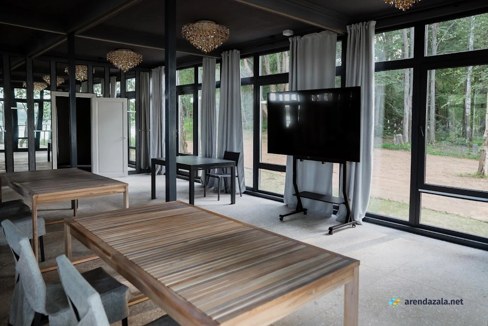 Зал способен вместить до 100 человек и предлагает панорамный вид на живописное озеро благодаря прозрачным стенам шатра, защищающего от непогоды. Просторная территория и высококлассное обслуживание радушного персонала, а также разнообразное меню с отличной кухней создают идеальные условия для проведения любых торжеств на высшем уровне. Гостям гарантированы незабываемые впечатления от потрясающих видов и безупречного сервиса в этом уютном заведении.