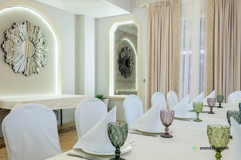 В уютном зале с нежными оттенками стильного декора и красивыми фотозонами посетителей ждут профессиональный и внимательный персонал, вкусная кухня и прекрасный звук для караоке. Заведение порадует гостей душевной атмосферой, просторными светлыми залами с огромными окнами, удобной парковкой и индивидуальным подходом к организации мероприятий любого формата - от модных показов до поминальных трапез.
