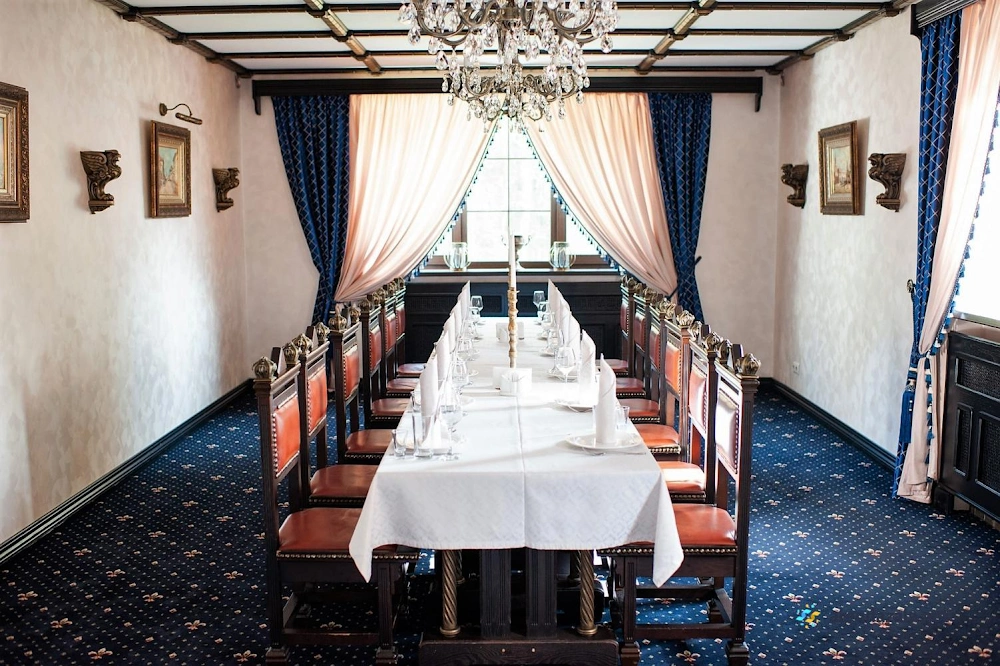 В элегантном заведении с величественным интерьером, напоминающим королевские дворцы, гостей встречает обходительный и профессиональный персонал. Изысканная кухня, прекрасная живая музыка и безупречный сервис создают атмосферу праздника и незабываемых впечатлений. Просторные залы идеально подходят для торжественных мероприятий, позволяя окунуться в атмосферу роскоши и веселья.