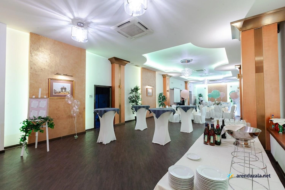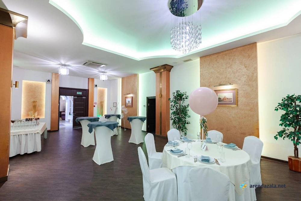 Зал "Зеленый" На Поклонной предлагает гостям уютную торжественную атмосферу без вульгарности и максимальный комфорт. Профессиональный персонал оперативно обслуживает мероприятия, предоставляя помощь во всех вопросах организации праздников и банкетов. Шеф-повар поможет составить вкусное меню из качественных блюд по доступным ценам. Вместительный зал с регулируемым освещением вмещает до сотни гостей, создавая идеальные условия для проведения свадеб, юбилеев и других торжеств.