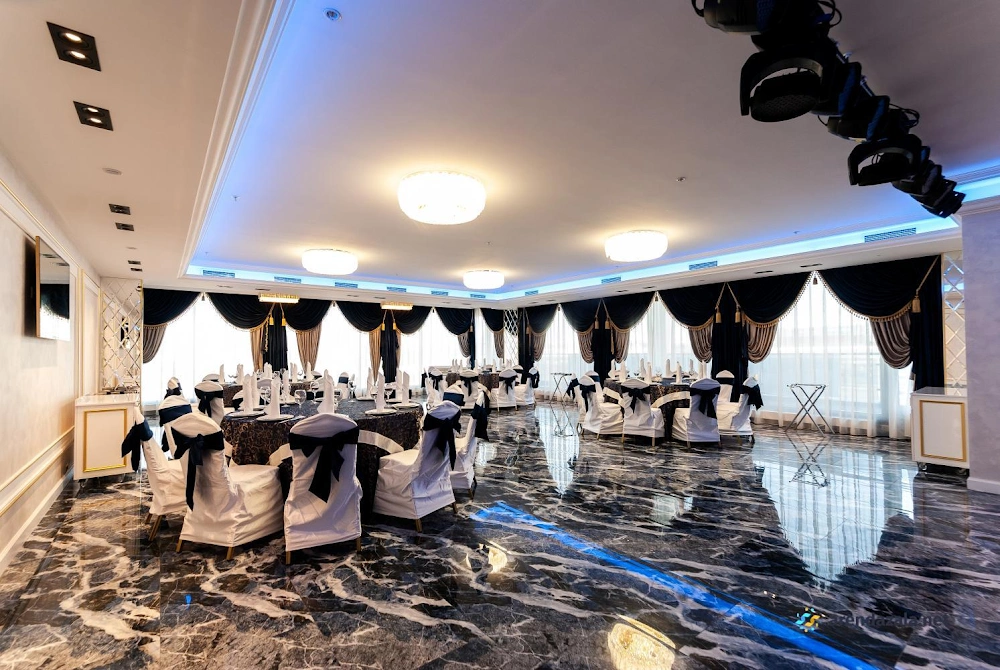 В просторном и современном зале с приятным дизайном гости чувствуют себя комфортно. Здесь всё продумано до мелочей: удобная сервировка столов, своевременная подача блюд и отзывчивый персонал, который внимателен к каждой просьбе. Можно насладиться вкусной едой от опытных поваров, особенно популярными являются жульен и другие блюда. Наличие парковки создает дополнительное удобство для посетителей. Заведение имеет большой опыт в проведении торжеств различного масштаба, будь то небольшая свадьба или выпускной с участием более трехсот человек.