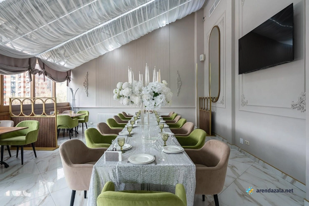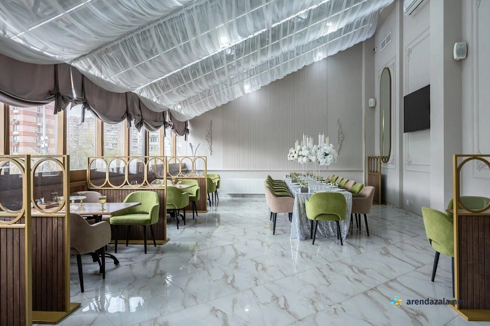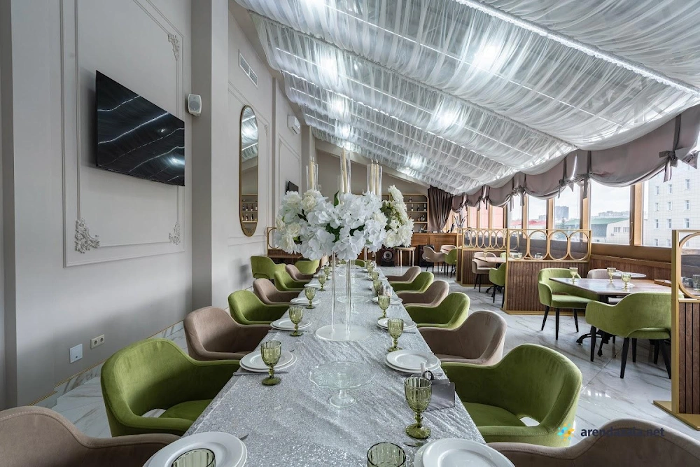 Зал «Панорамный» White hall представляет собой просторное и светлое помещение, идеально подходящее для проведения торжественных мероприятий. Здесь установлены кондиционеры, обеспечивающие комфортную температуру, а также выделено специальное место для курения. Зал отличается элегантным и нежным дизайном интерьера, создающим уютную атмосферу. Посетителей ожидает вкусная кухня с разнообразием холодных и горячих блюд, свежих фруктов, овощей и зелени. Вежливый персонал внимательно относится к пожеланиям гостей и помогает в организации мероприятий, обеспечивая безупречный сервис.