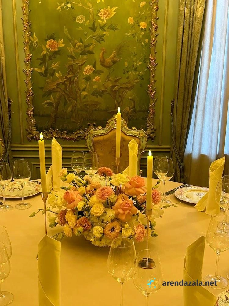 Зал "Фарфоровый" Турандот представляет собой уникальное место, где гости могут окунуться в атмосферу роскоши и изысканности. Интерьер зала поражает великолепной лепниной, золотыми акцентами и венецианскими фонарями, создавая ощущение исторического величия. Перед посетителями предстает настоящий шедевр архитектурного искусства, воплощающий сцены из работ знаменитого Растрелли. Обслуживание на высшем уровне: вежливый и профессиональный персонал, услужливые официанты и опытные сомелье, которые помогут сделать правильный выбор из обширной винной карты. Меню предлагает изысканные блюда авторской кухни с безупречной подачей, позволяя гостям насладиться кулинарными шедеврами. Особую атмосферу создают живые выступления джазовых исполнителей, наполняющие пространство волшебными нотами.