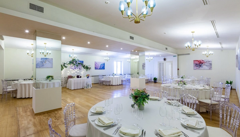 Зал "Европа" Villa Arcobaleno – это прекрасное место для проведения торжественных мероприятий. Посетители отмечают красивый и чистый зал, вкусную еду, получающую высокие оценки гостей, и отличное обслуживание внимательных официантов. Заведение располагает большой парковкой, живописной территорией с зелеными насаждениями и декоративным прудом, создающими атмосферу праздника. Доброжелательные менеджеры помогают с организационными вопросами, обеспечивая высокий уровень сервиса. После торжества молодоженам предоставляется номер, который, несмотря на некоторые замечания по чистоте и оборудованию, не портит общего положительного впечатления от посещения этого места.