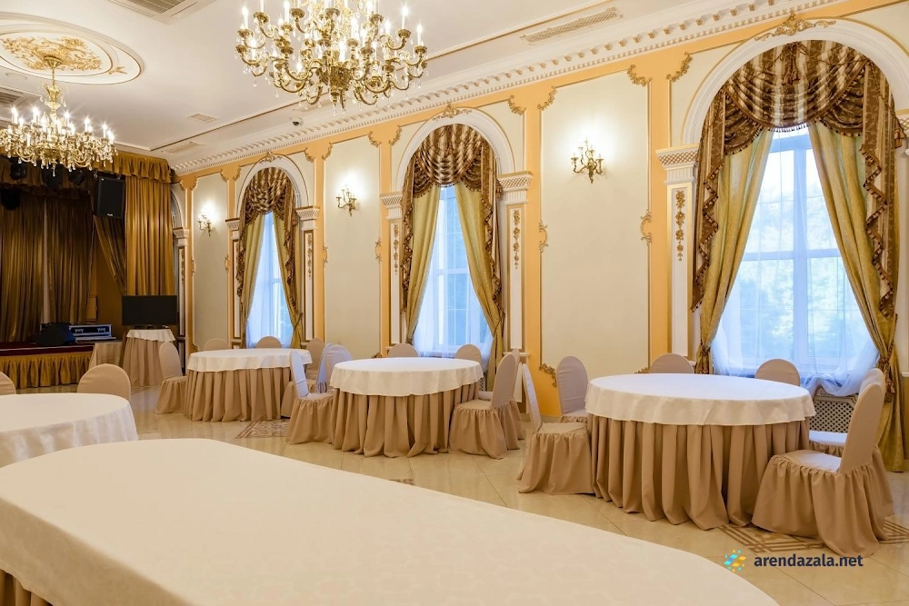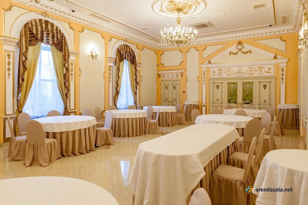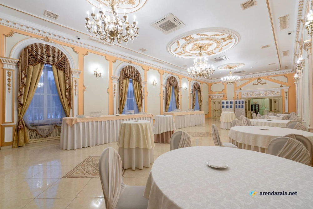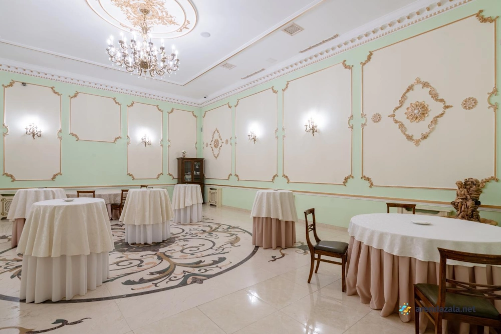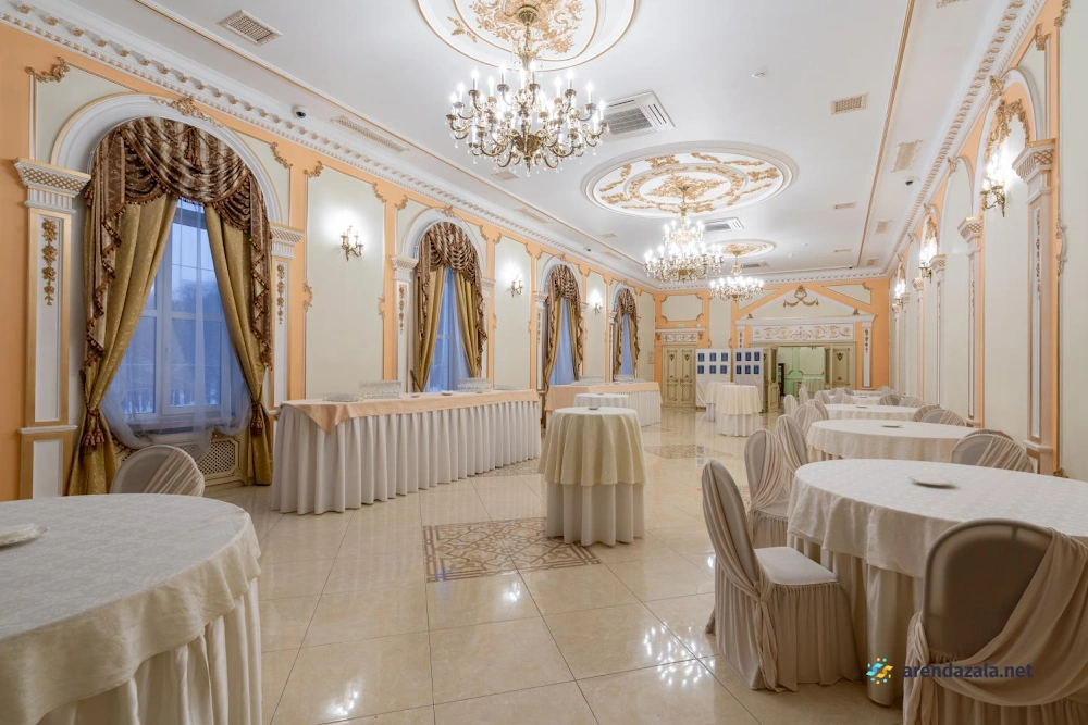 Величественный зал, поражающий своим великолепием, приглашает посетителей окунуться в атмосферу старинного дворцового убранства и роскоши. Высокие потолки, богато украшенные лепниной и позолотой, создают ощущение торжественности и монументальности. Просторные залы с огромными окнами, выходящими в живописный парк, наполняют помещение естественным светом и позволяют любоваться прекрасными пейзажами. Здесь царит особая атмосфера, пропитанная духом истории и воспоминаниями, которыми хочется поделиться с близкими людьми за вкусным салатом или другими изысканными блюдами.