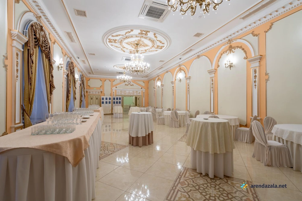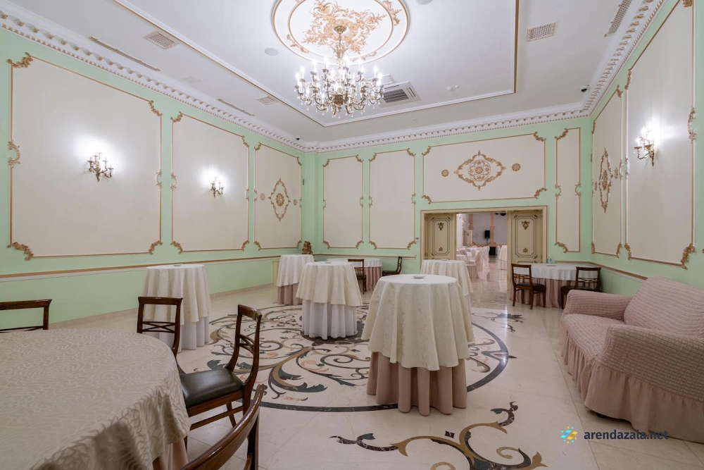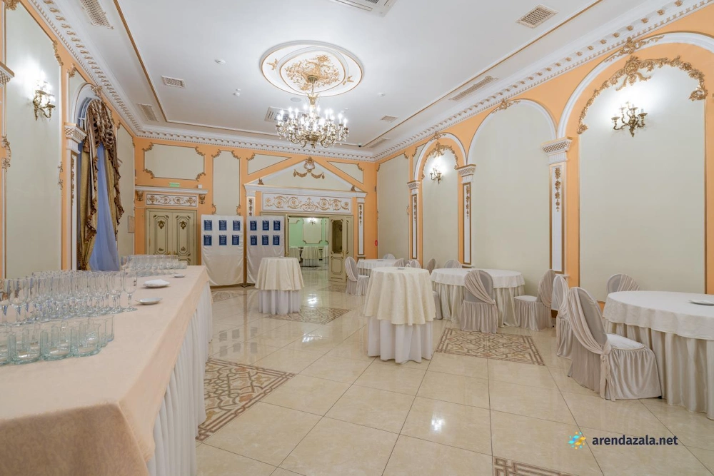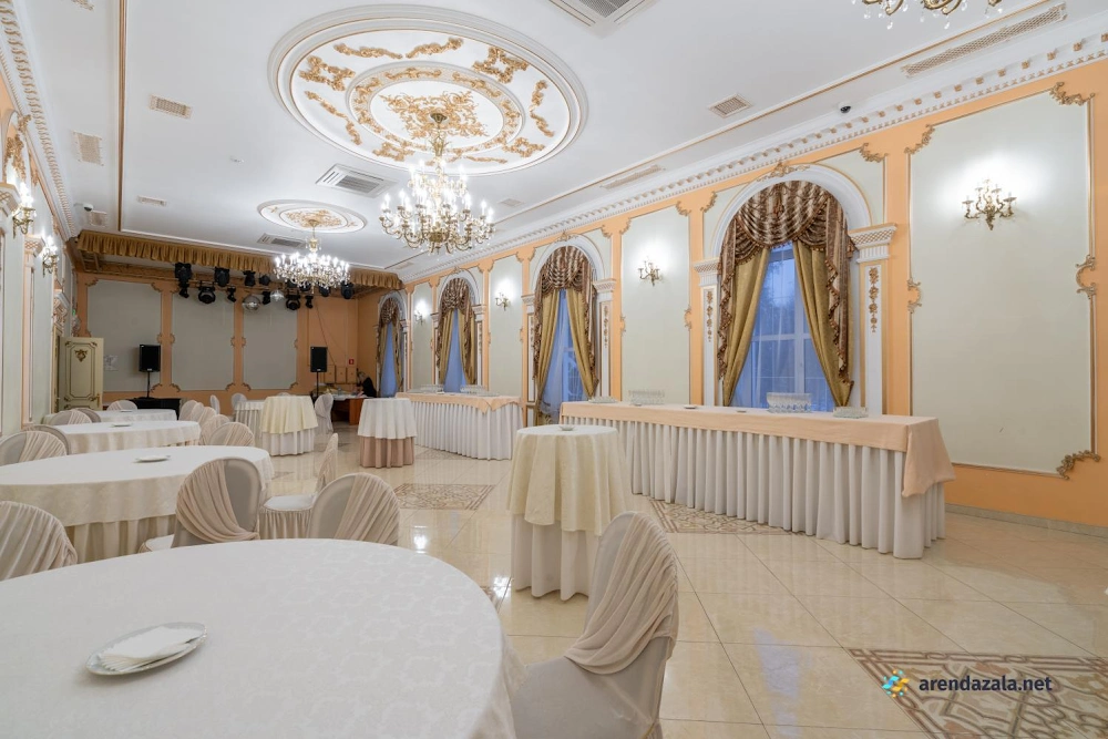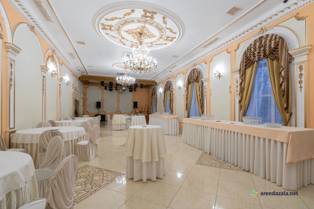 Величественный зал, поражающий своим великолепием, приглашает посетителей окунуться в атмосферу старинного дворцового убранства и роскоши. Высокие потолки, богато украшенные лепниной и позолотой, создают ощущение торжественности и монументальности. Просторные залы с огромными окнами, выходящими в живописный парк, наполняют помещение естественным светом и позволяют любоваться прекрасными пейзажами. Здесь царит особая атмосфера, пропитанная духом истории и воспоминаниями, которыми хочется поделиться с близкими людьми за вкусным салатом или другими изысканными блюдами.